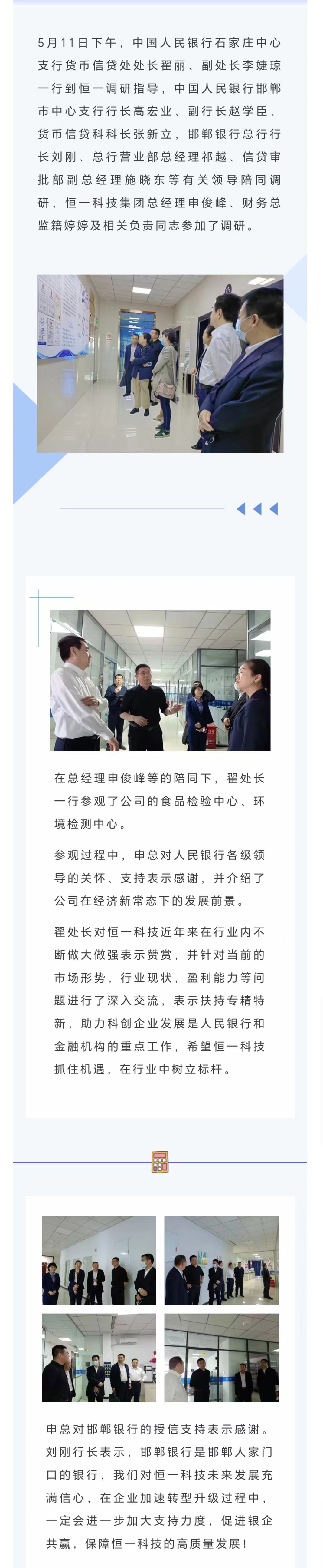 中國(guó)人民銀行石家莊中心支行領(lǐng)導(dǎo)來(lái)恒一考察調(diào)研